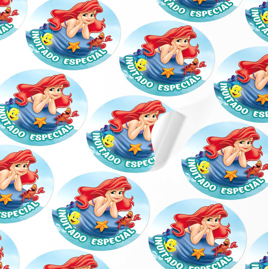 120 Stickers Etiquetas Sirenita Ariel Papel 7cm